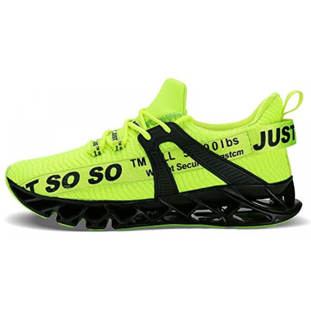 Mens Runing Shoes Walking Non Slip Blade Type Sneakers Black Green