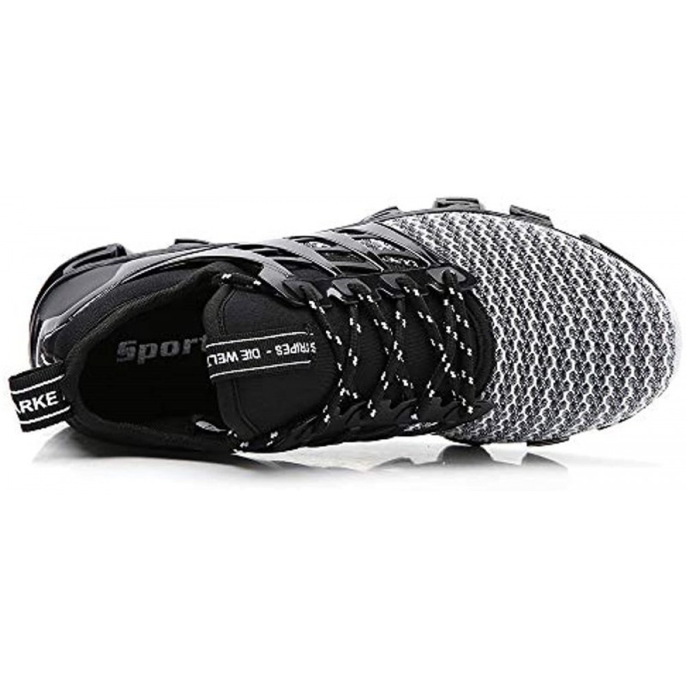 Men's Non Slip Gym Sneakers Lightweight Breathable Athletic Running Walking Tennis Shoes Black-White