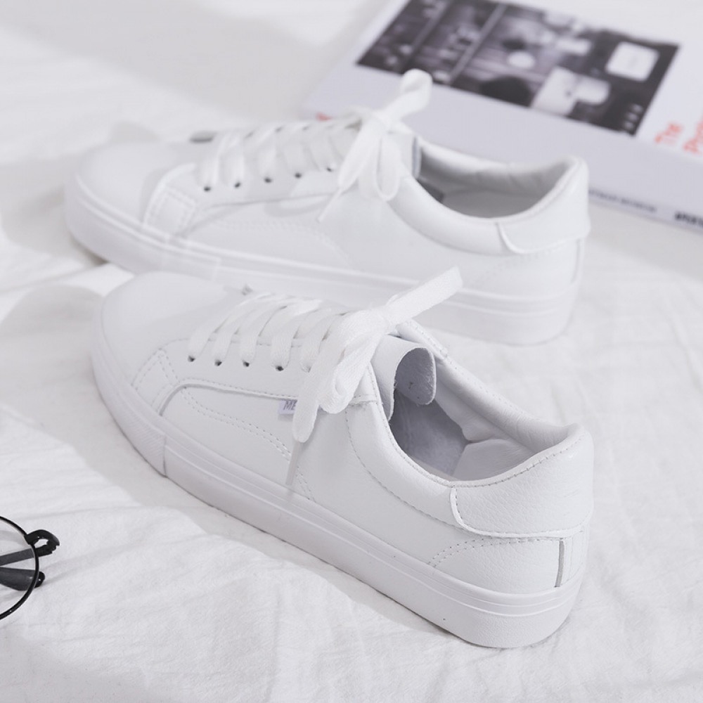 Spring New White Shoes Female Leather Student Running Flat Casual Shoes