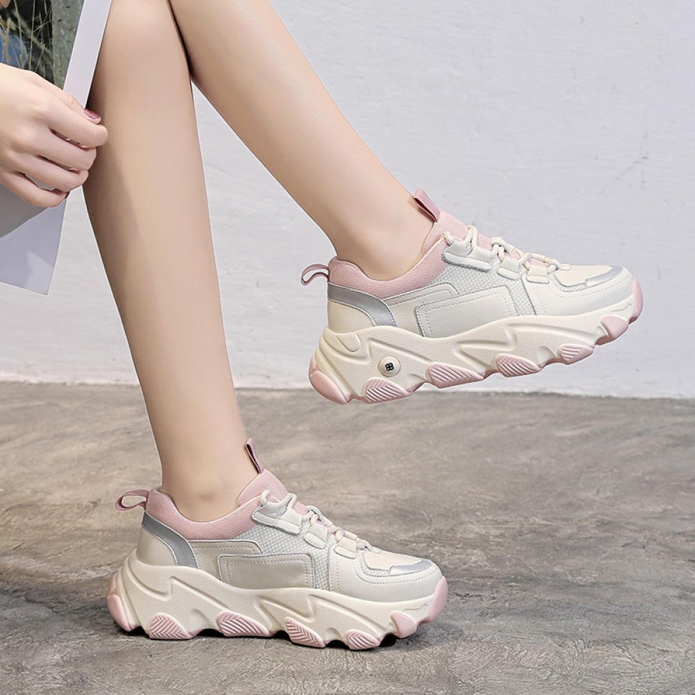 Spring New Student Sports Shoes Women's Running Thick-Soled Height Increase Shoes