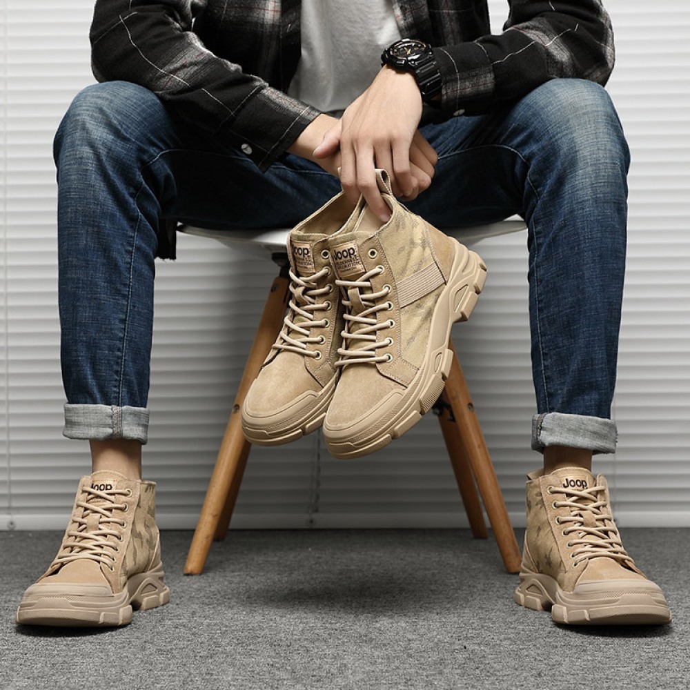 Men's Mid-Tube Boots Trend Middle-Top Martin Boots Autumn British Tooling Shoes High-Top
