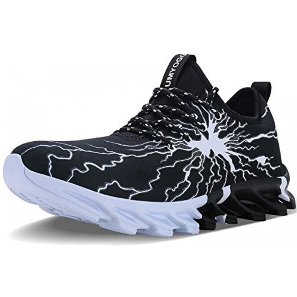 Mens Lightweight Athletic Running Walking Gym Shoes Casual Fashion Sneakers Black White