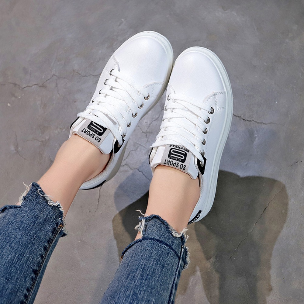 Spring New White Shoes Female Leather Student Running Flat Casual Shoes