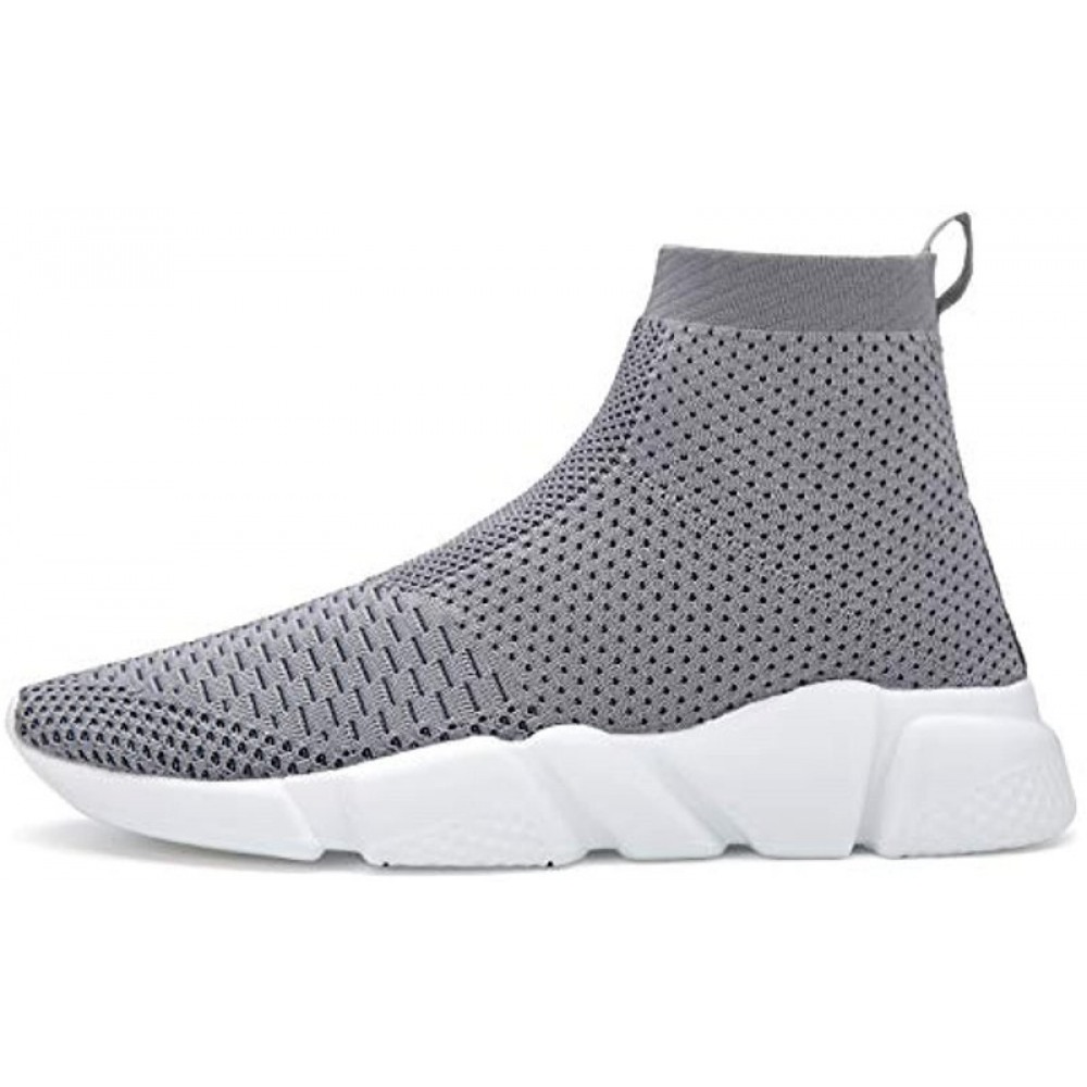 Men's Running Shoes Breathable Knit Slip On Sneakers Lightweight Athletic Shoes Casual Sports Shoes High Top Grey