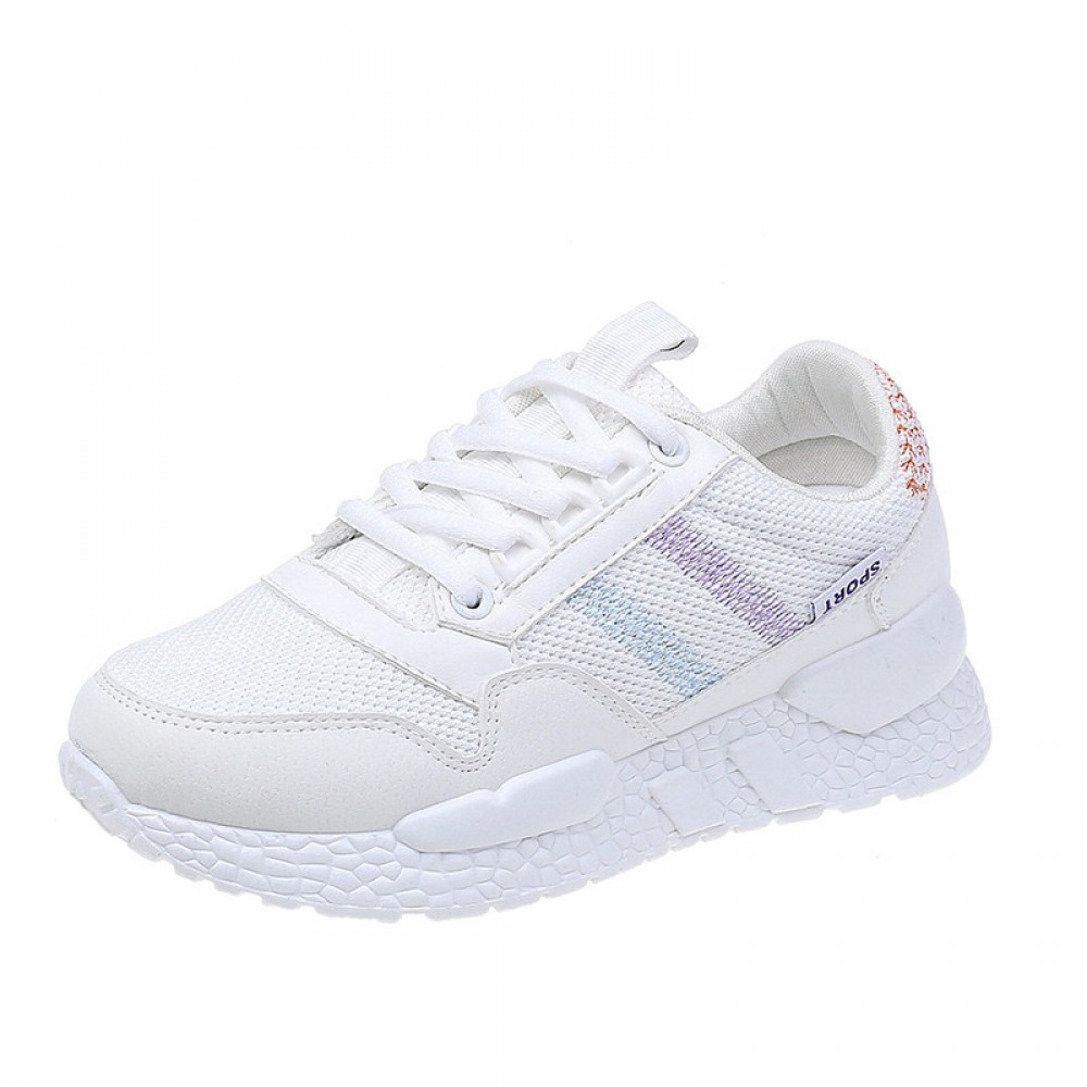 Spring And Summer New White Shoes Women Breathable Leather Thick-Soled Casual Sports Running Shoes