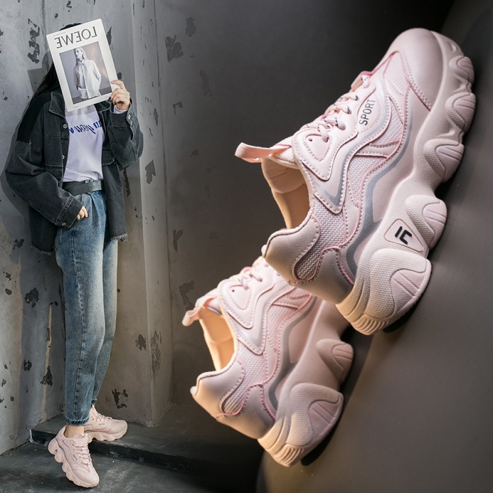 Spring New Student Sports Shoes Women's Running Thick-Soled Height Increase Shoes