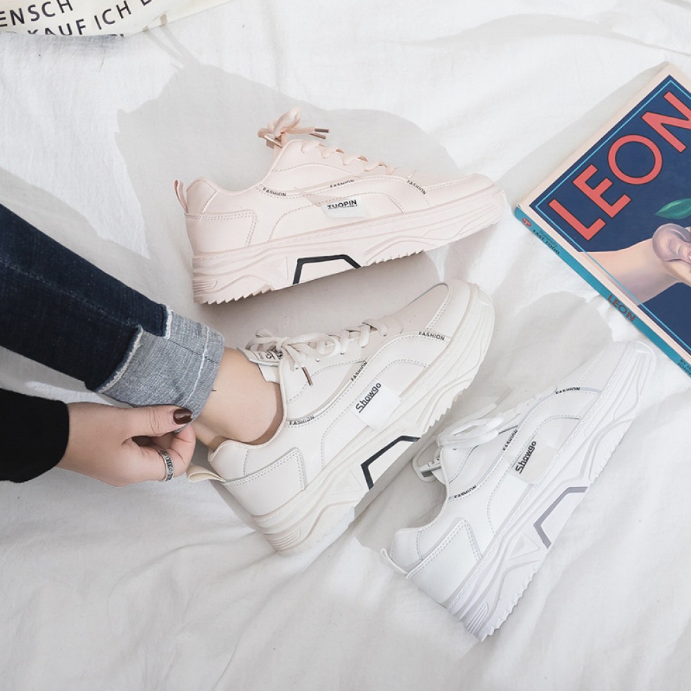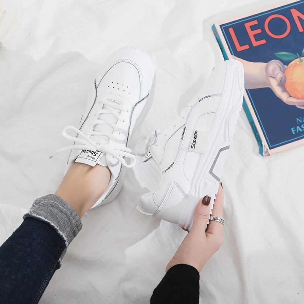 Spring New White Shoes Female Leather Student Running Flat Casual Shoes