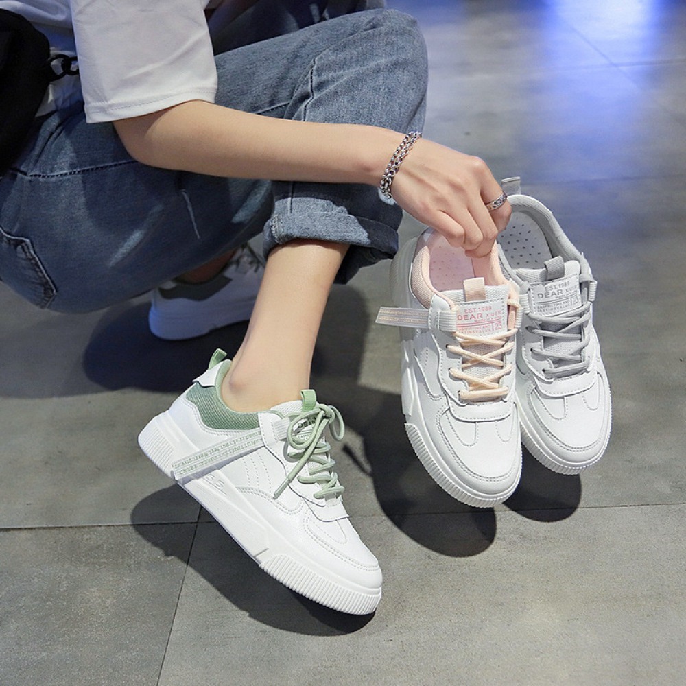 Spring New White Shoes Female Leather Student Running Flat Casual Shoes