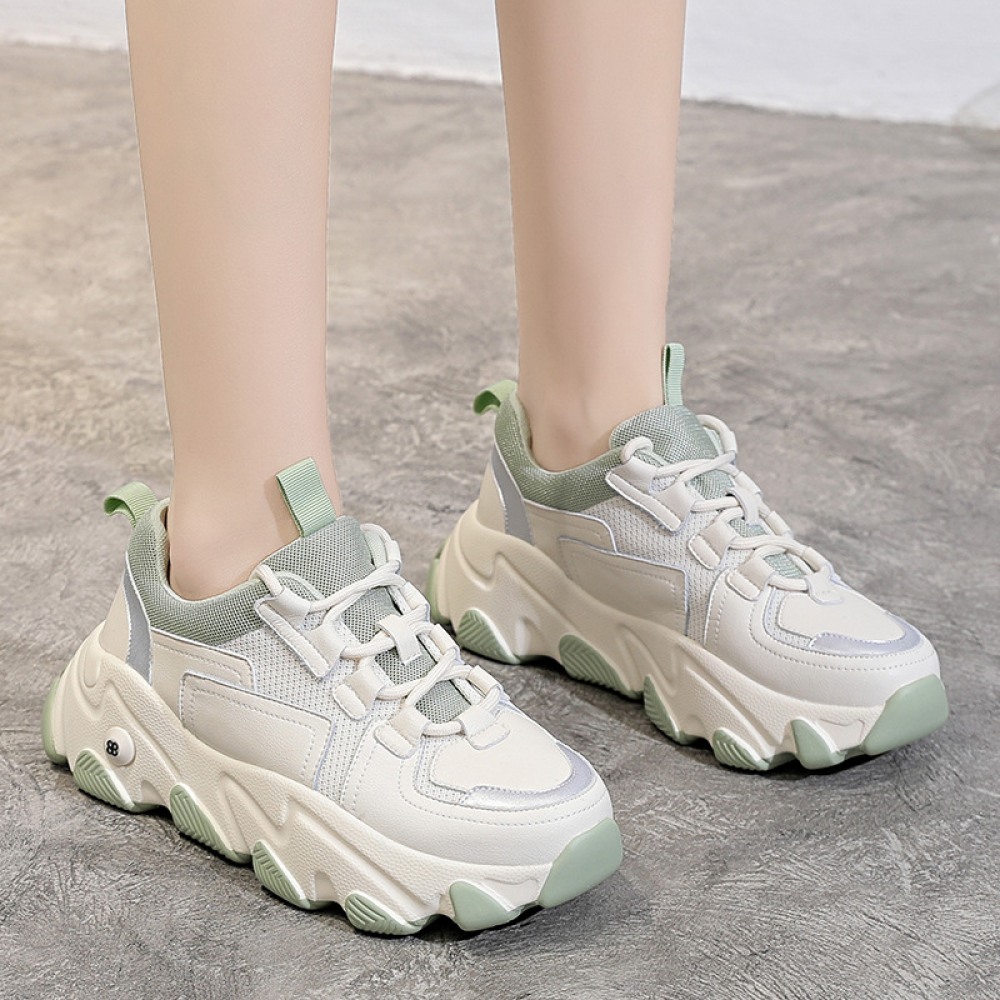Spring New Student Sports Shoes Women's Running Thick-Soled Height Increase Shoes